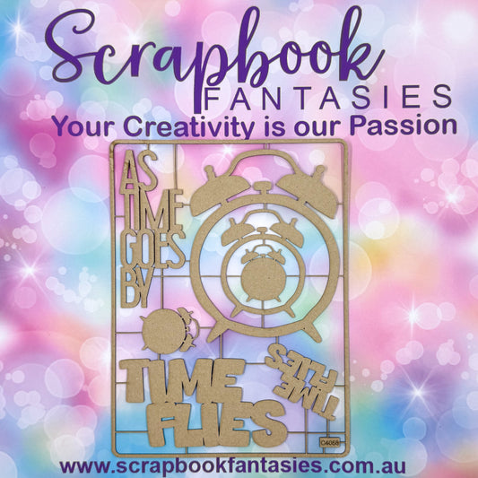 Chippie-Cuts Grey 1.2mm Chipboard 6"x8" - Time Flies (7 pieces) C4058