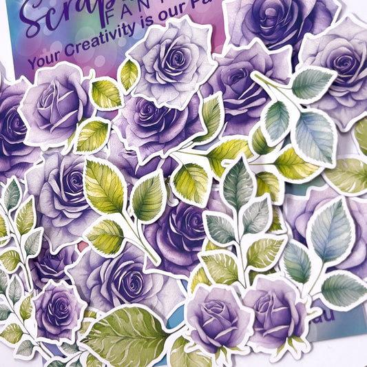 Springtime Tea Party Colour-Cuts - Purple Roses & Leaves (42 pieces) 20060