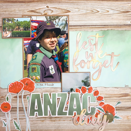 ANZAC 6.25"x2.25" White Linen Cardstock Title-Cut - Designed by Alicia Redshaw