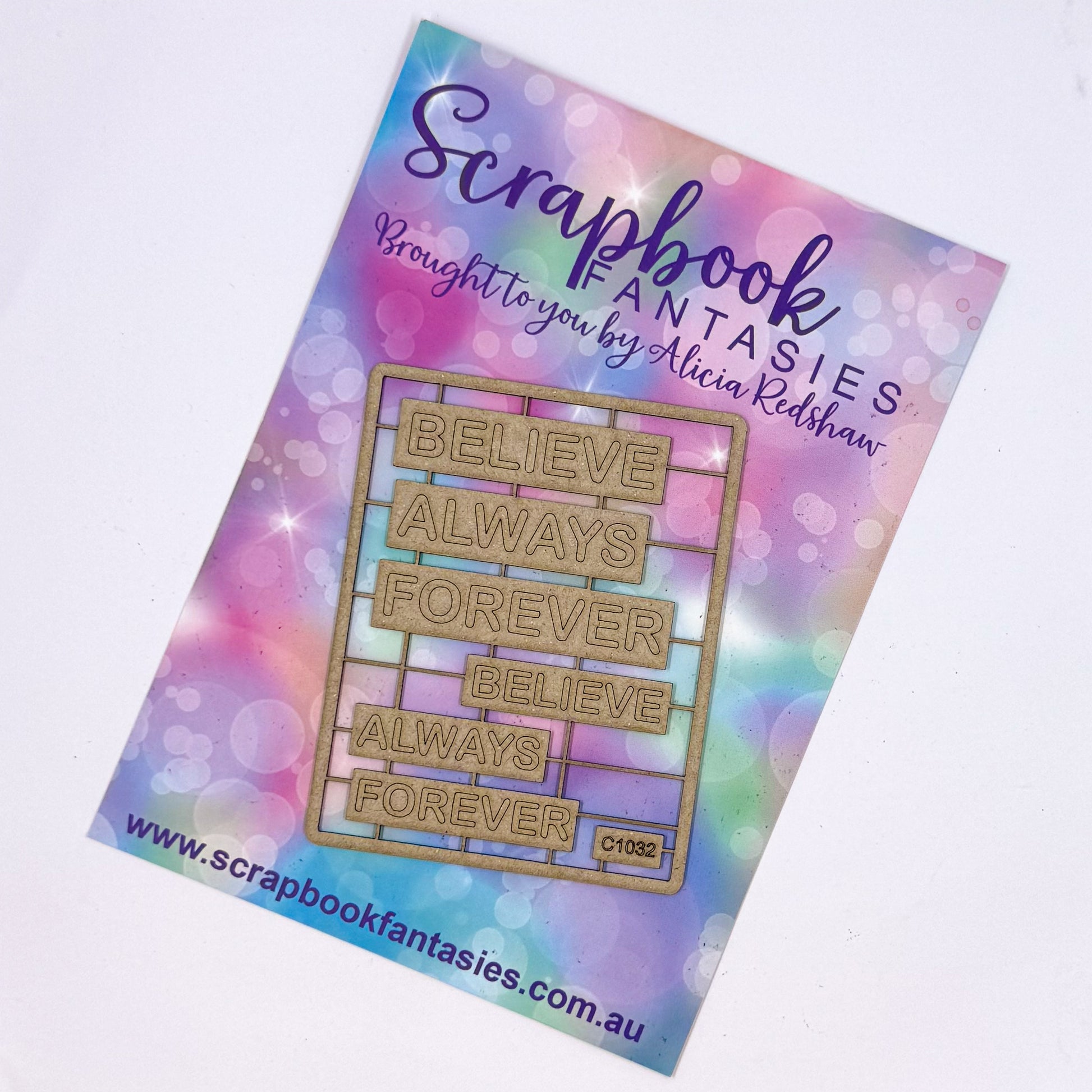 Chippie-Cuts Grey 1.2mm Chipboard 2.75"x3.5" - Believe Always Forever (6 pieces) C1032