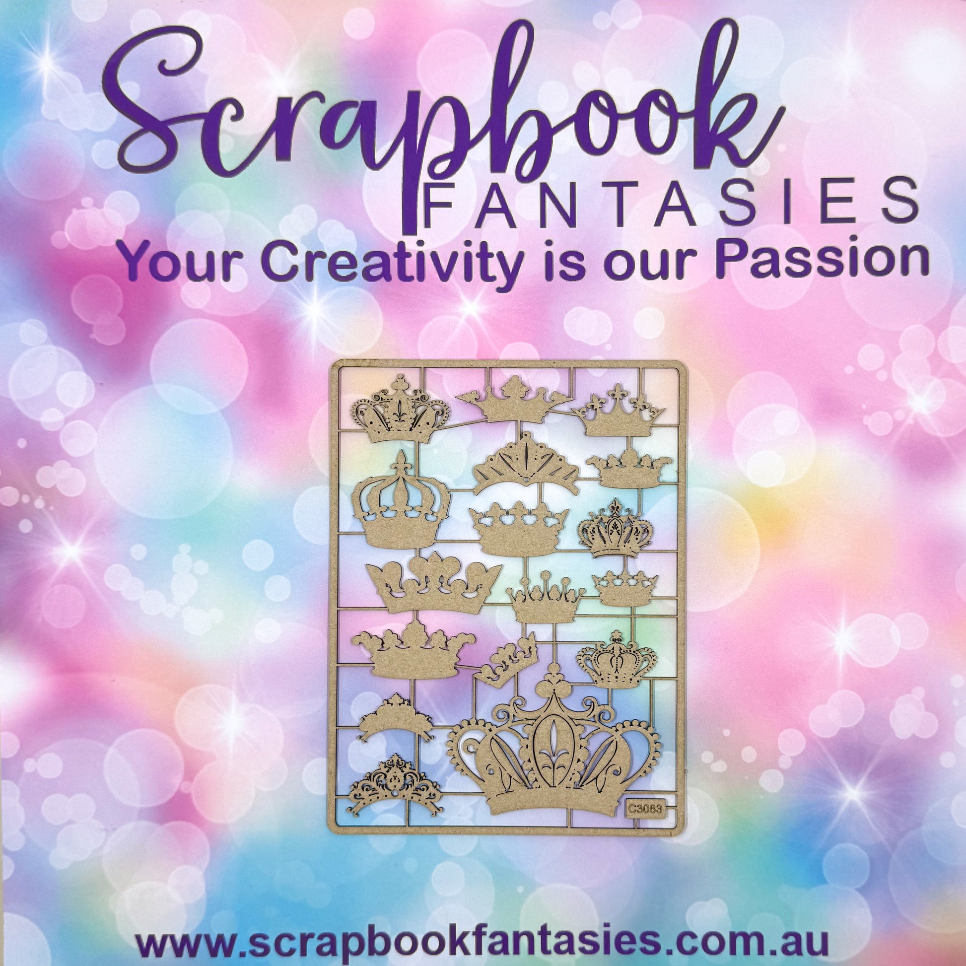 Chippie-Cuts Grey 1.2mm Chipboard 4.5"x6" - Crowns (17 pieces) C3083