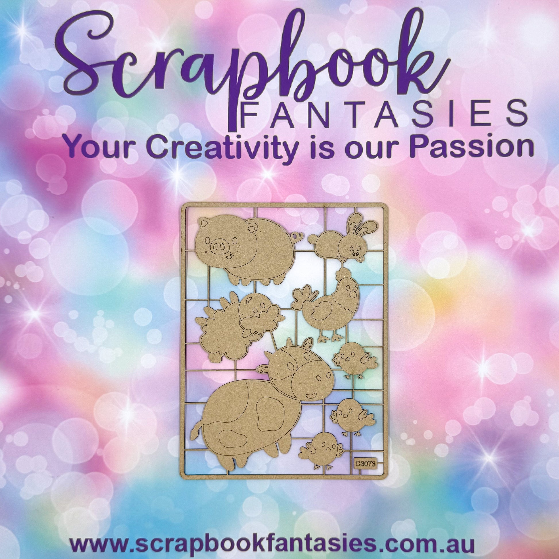 Chippie-Cuts Grey 1.2mm Chipboard 4.5"x6" - Cute Farm Animals (8 pieces) C3073