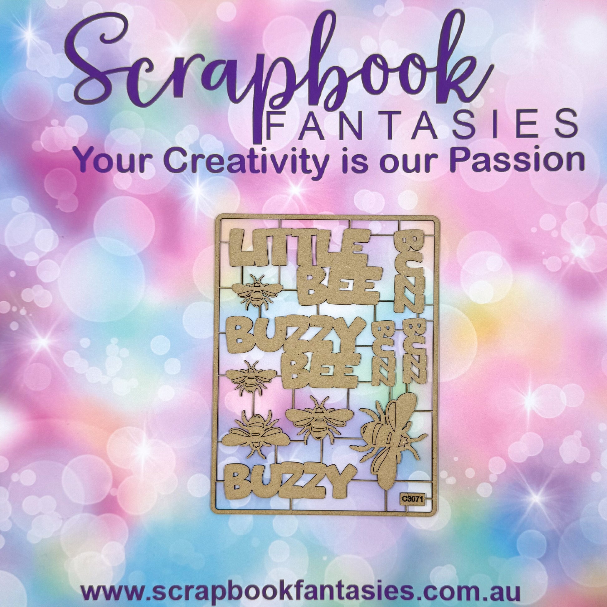 Chippie-Cuts Grey 1.2mm Chipboard 4.5"x6" - Little Bee (11 pieces) C3071