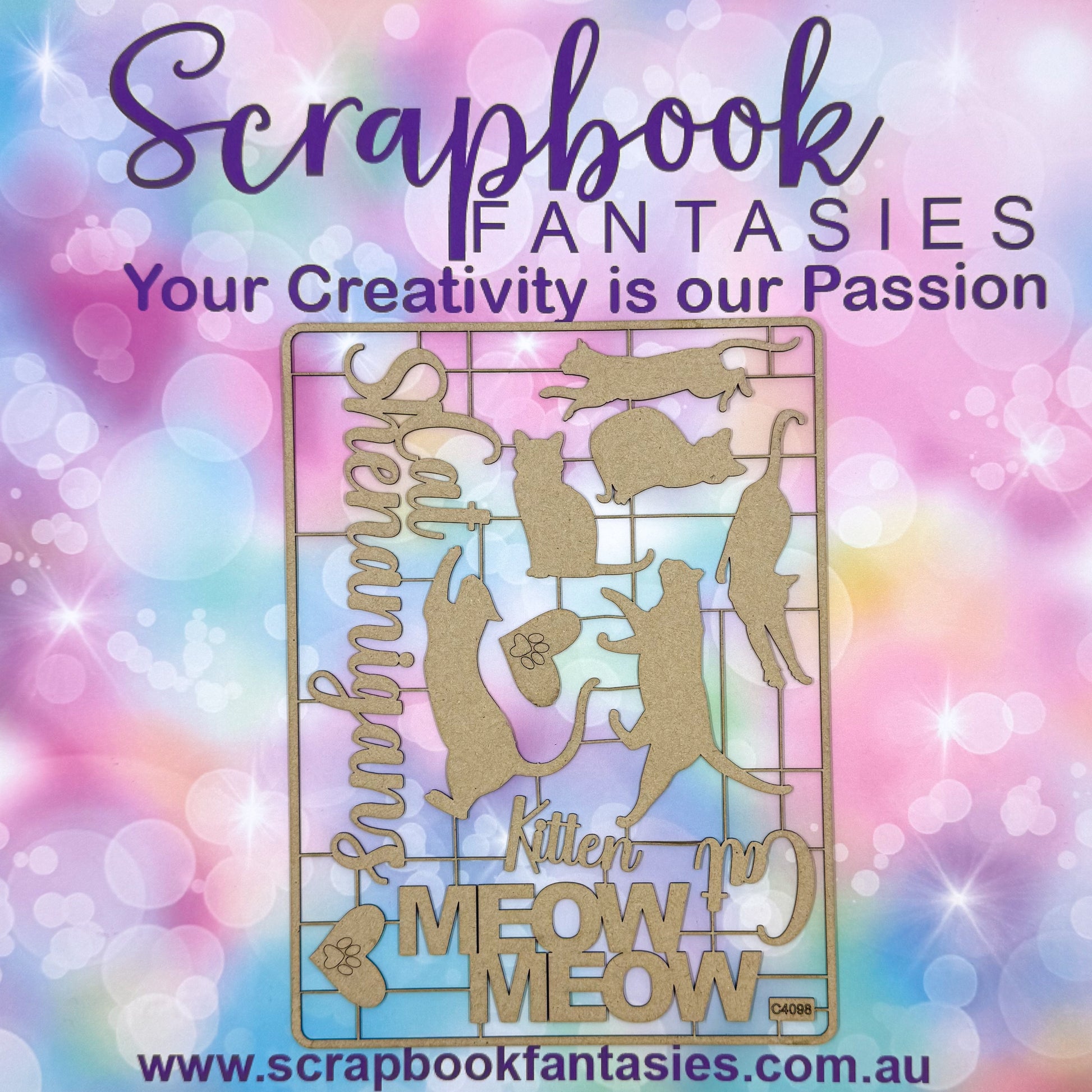 Chippie-Cuts Grey 1.2mm Chipboard 6"x8" - Cat Shenanigans (12 pieces) C4098