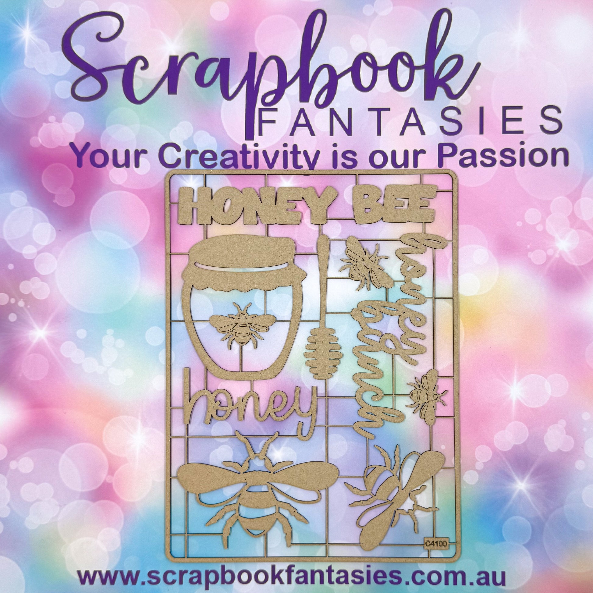 Chippie-Cuts Grey 1.2mm Chipboard 6"x8" - Honey Bee (11 pieces) C4100