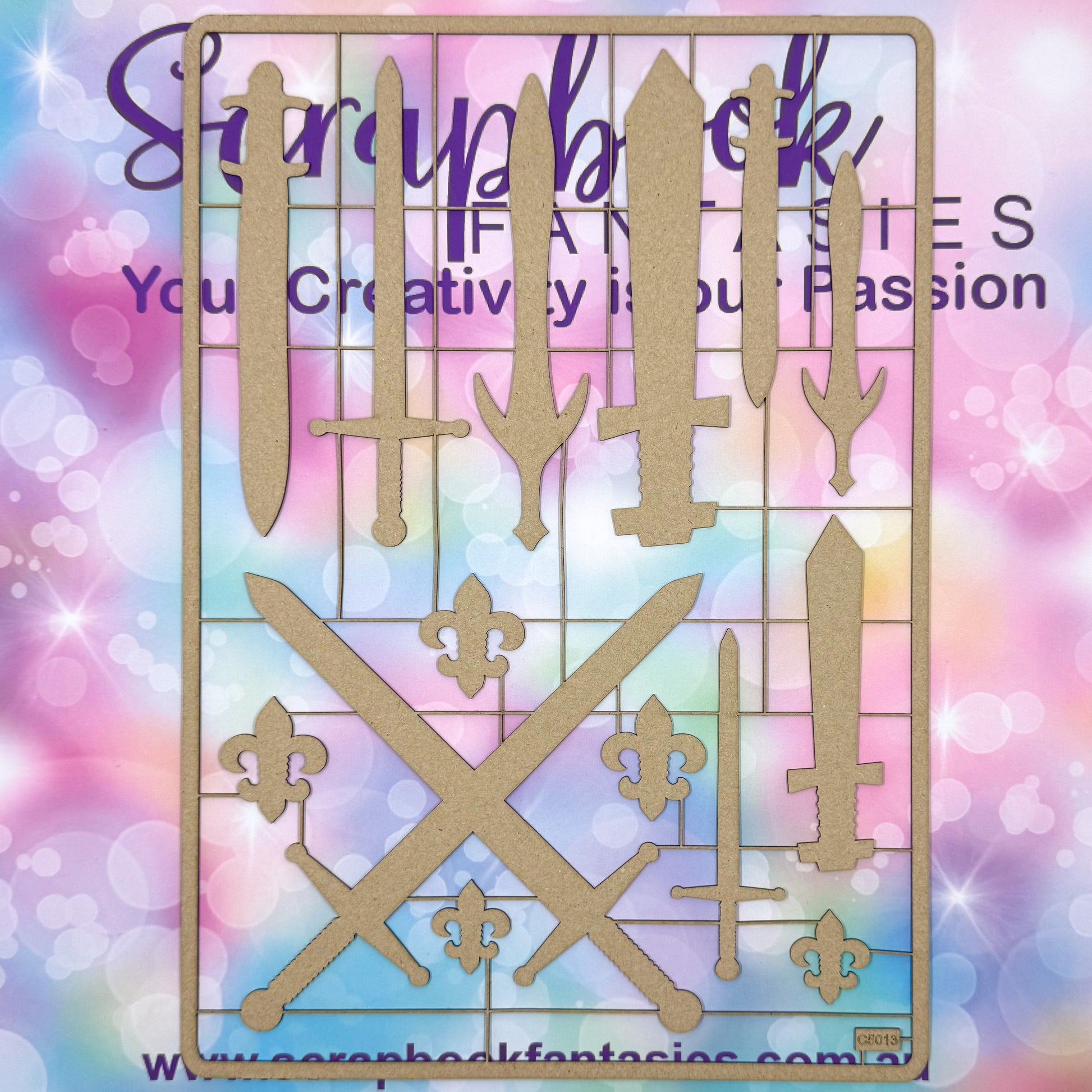 Chippie-Cuts Grey 1.2mm Chipboard 8.25"x11.75" - Swords (14 pieces) C5013