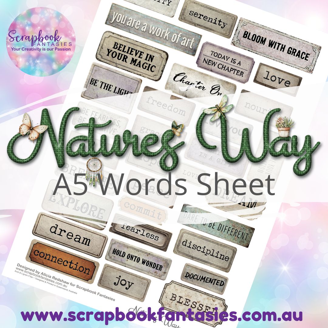 Natures Way A5 Words Sheet - Vintage Word Plaques 251187